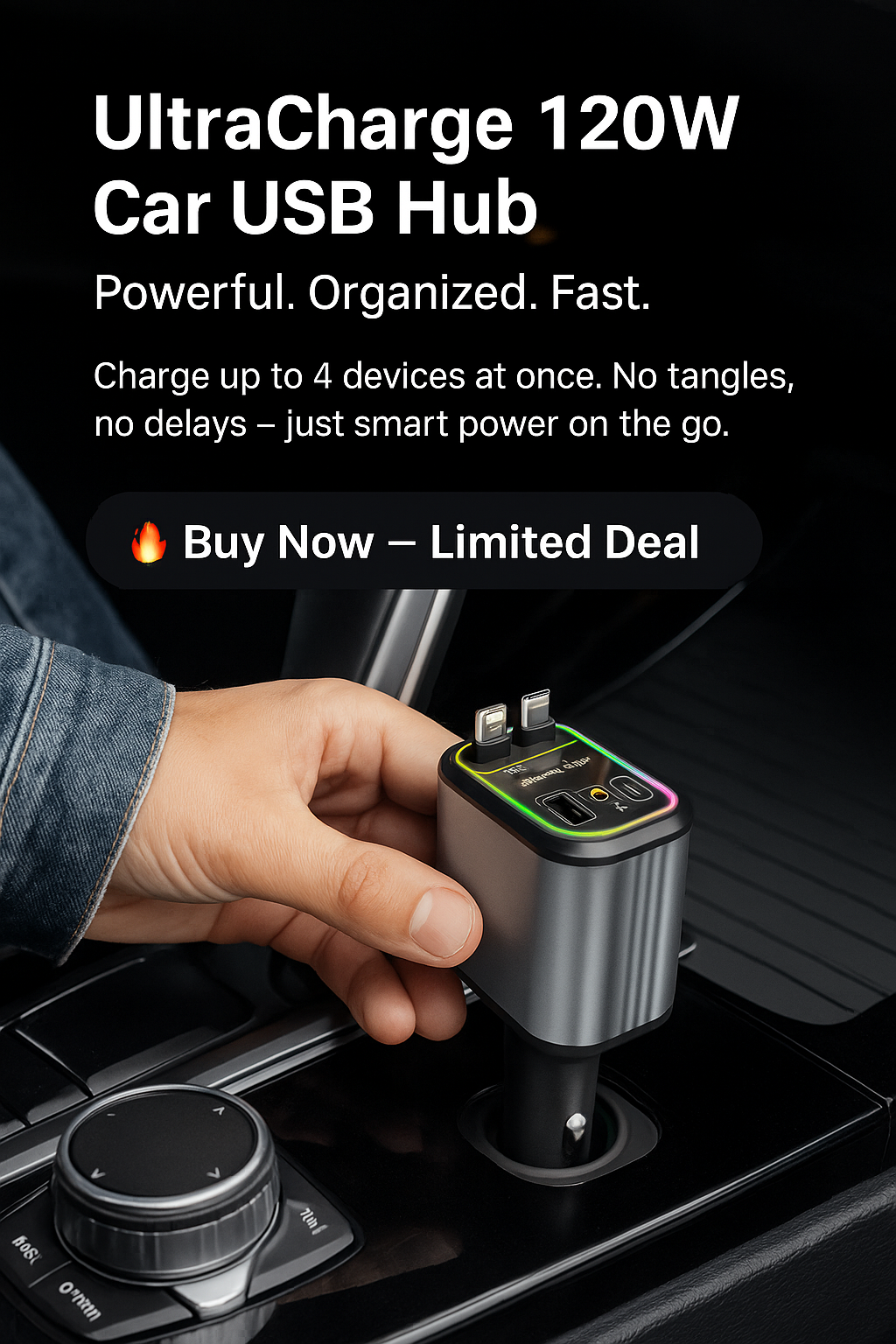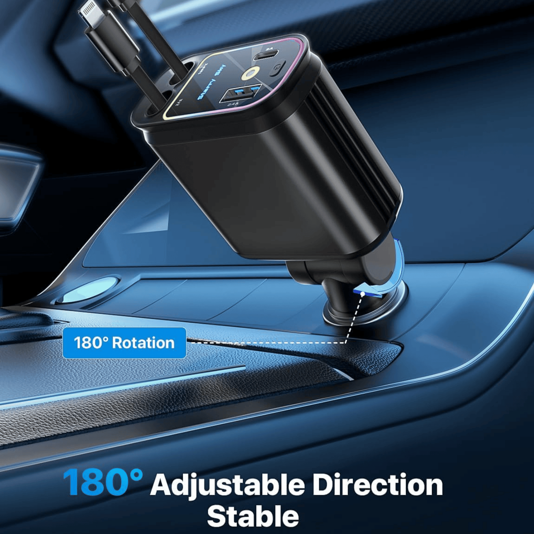Whether you’re commuting or on a long road trip, the UltraCharge™ Car Hub transforms your vehicle into a fast-charging powerhouse. With 4 charging ports (2 retractable + 2 standard), you’ll never run out of juice.